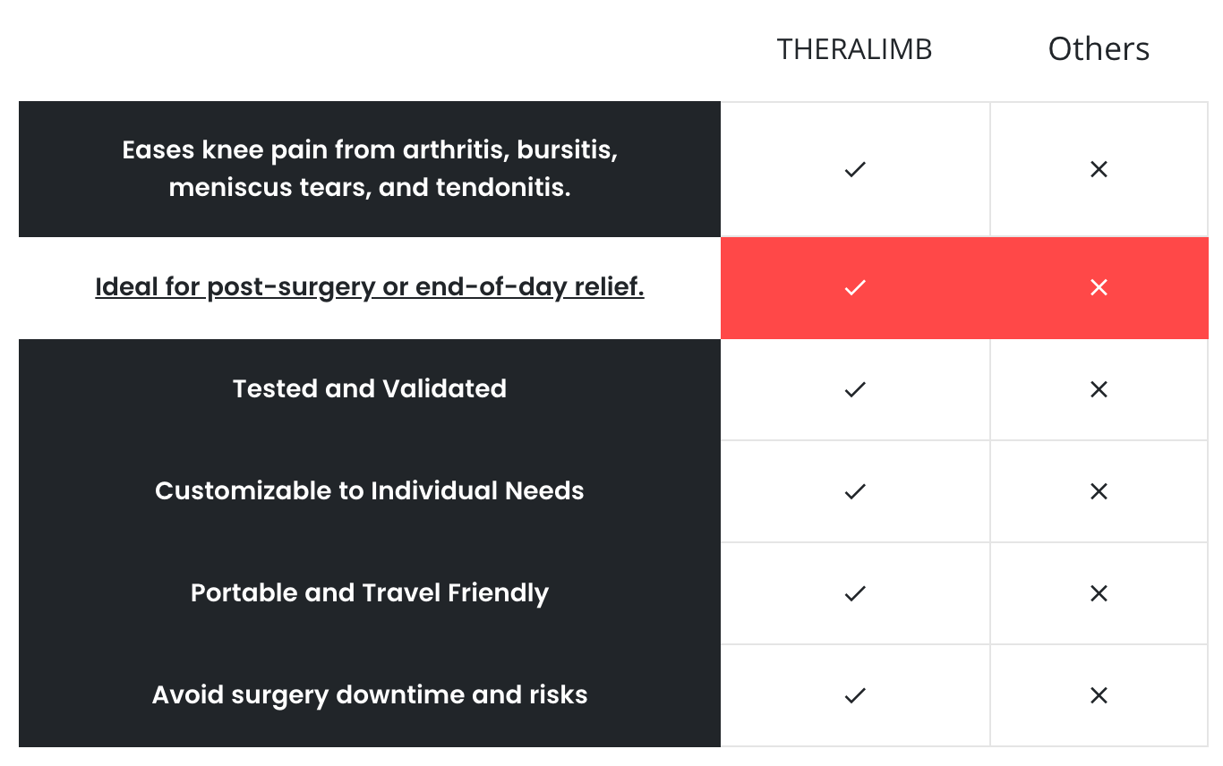 We're incredibly confident that you'll get relief from your knee pain with our device, that's why we offer a 60-day no-risk guarantee period. If you are unsatisfied with your Reliff product for any reason, you can return it for a full refund within 60 days of your purchase, please contact us at support@theralimb.com